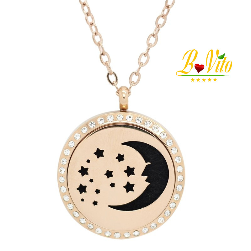 Collier diffuseur de parfum ou d’huile essentielle "La lune et les étoiles "