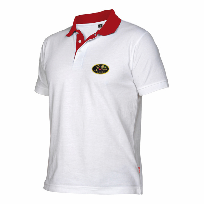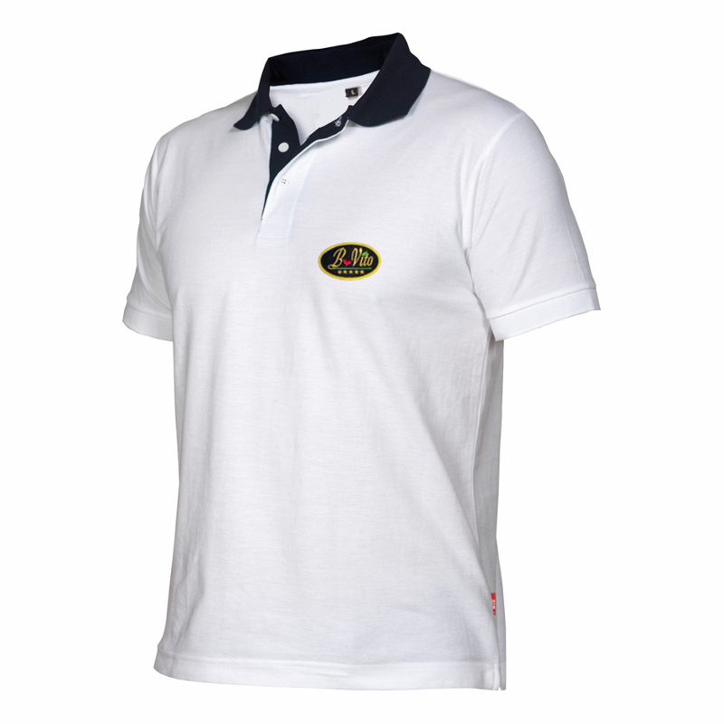 Polo à manches courtes pour hommes. Finition de luxe avec corps blanc et trois boutons de la même couleur. Le col et l’ourlet ont une couleur contrastée.
