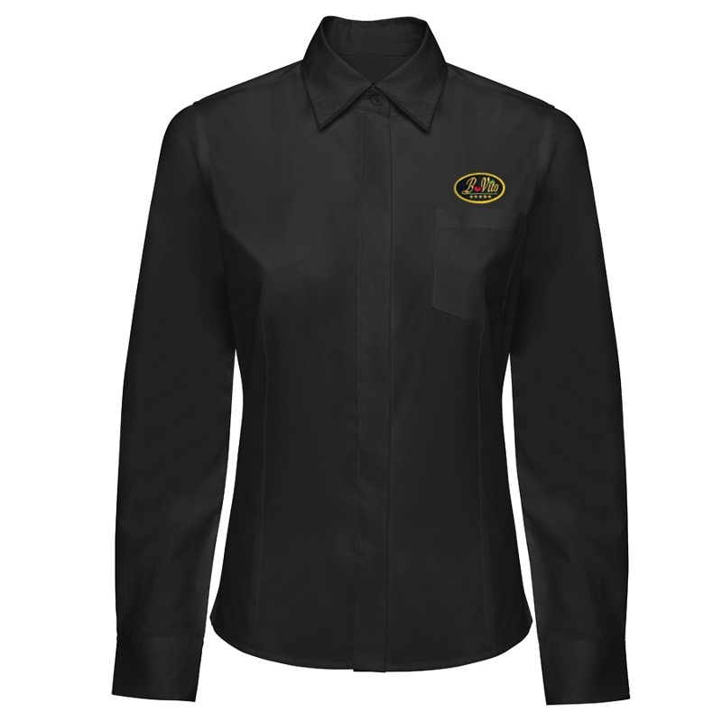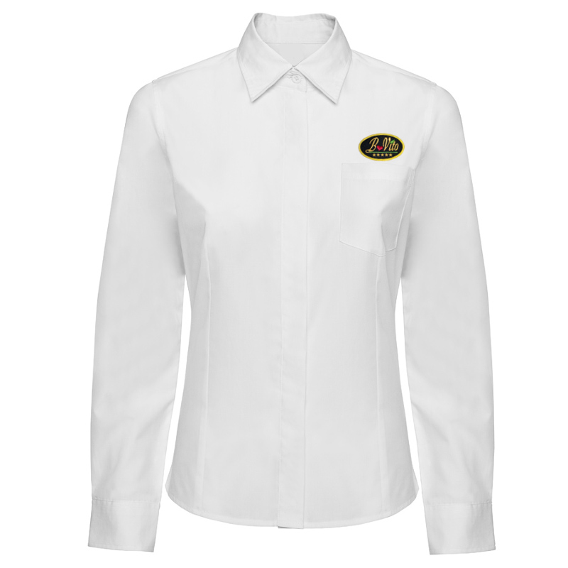 féminine, à manches longues. La chemise a une poche et des boutons cachés de la