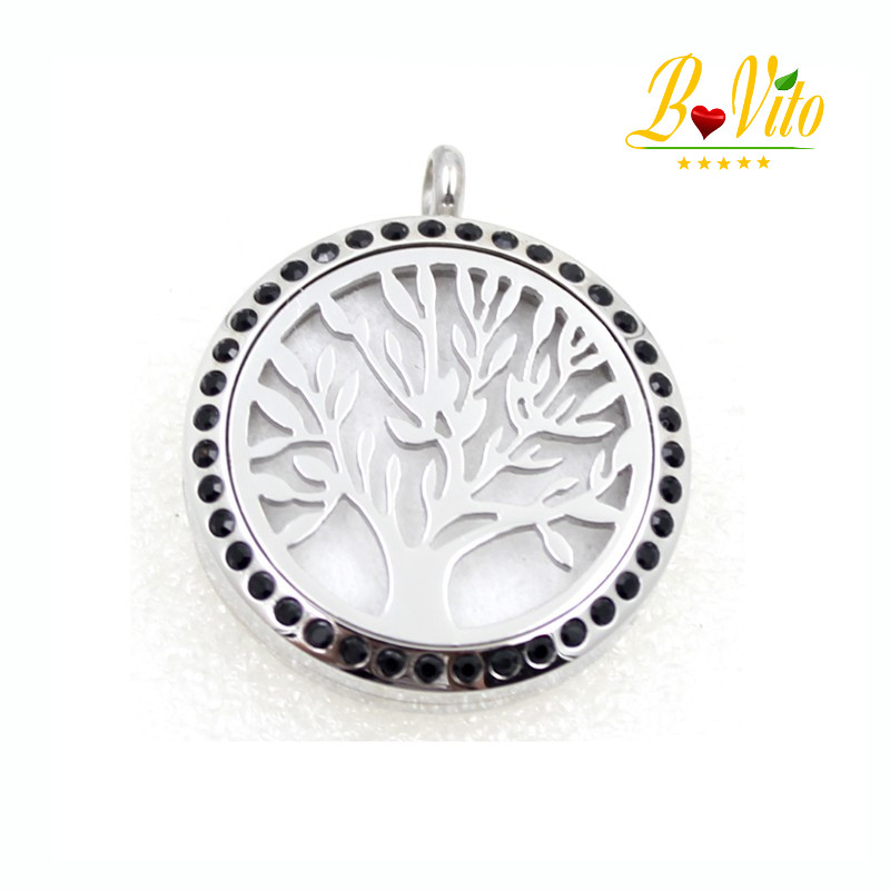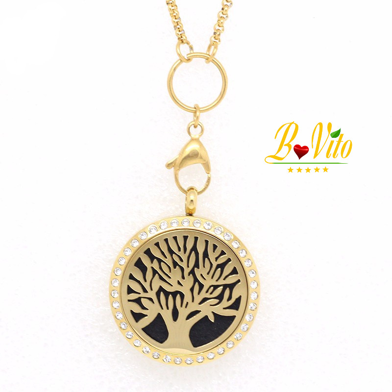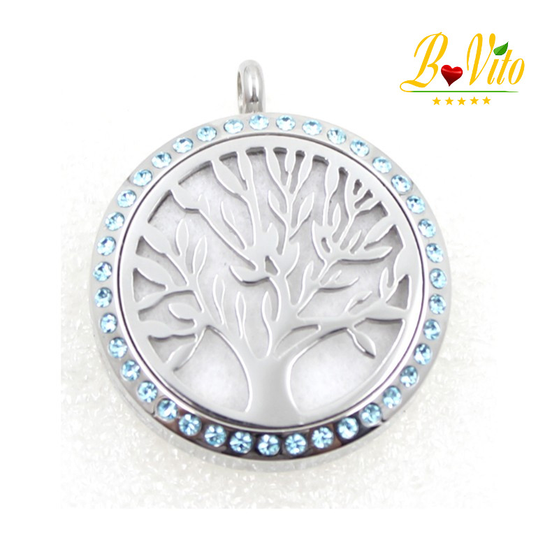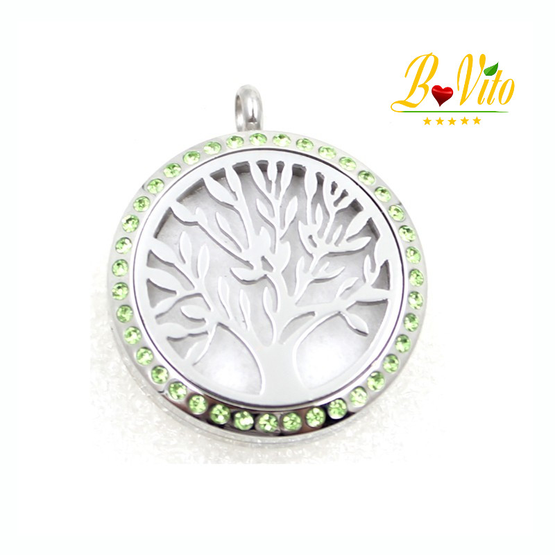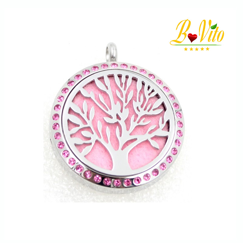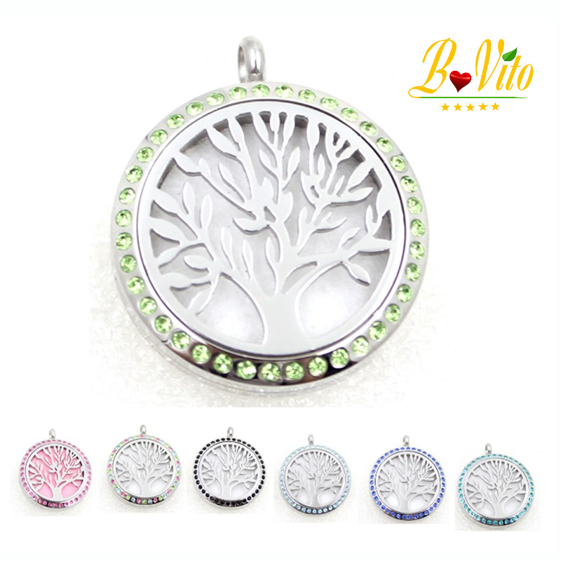 Collier diffuseur de parfum ou d’huile essentielle "L’arbre de la vie " avec strass en couleur