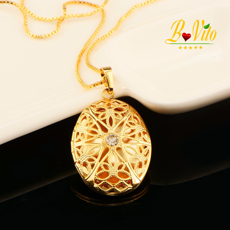 Collier diffuseur de parfum ou d’huile essentielle médaillon ellipse «Fleur » avec strass, plaqué or