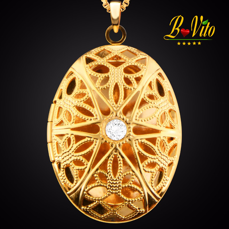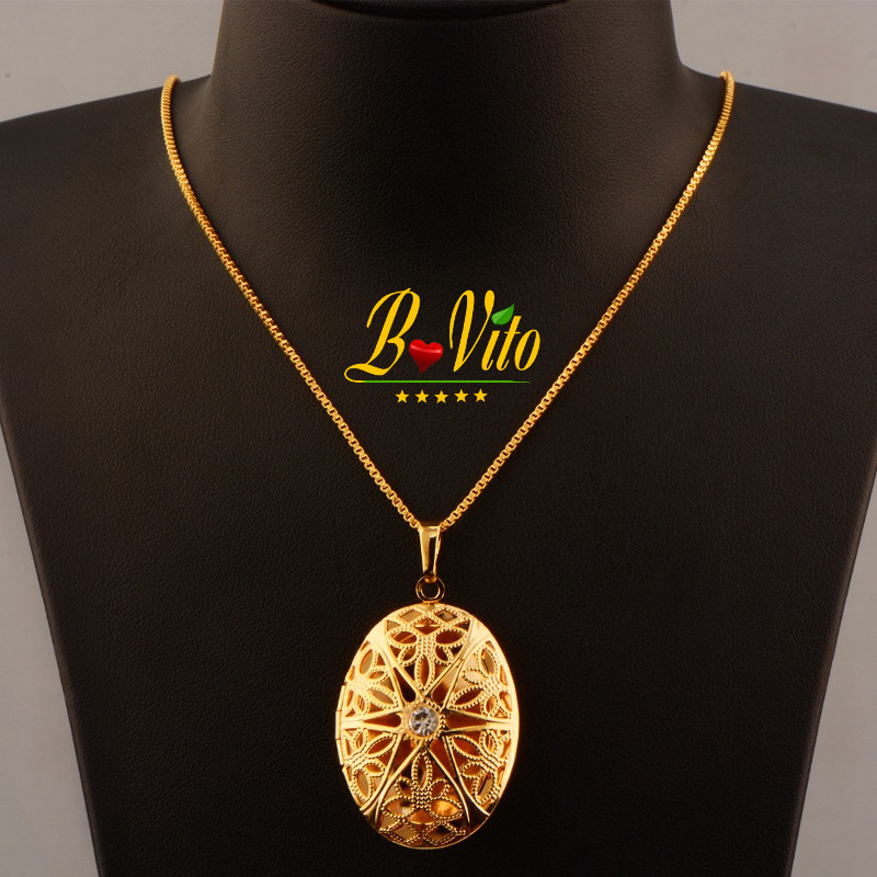 Collier diffuseur de parfum ou d’huile essentielle médaillon ellipse «Fleur» avec strass, plaqué or