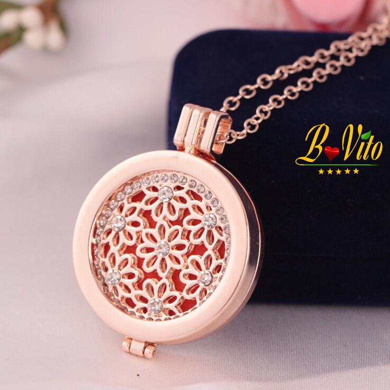 Collier diffuseur de parfum ou d’huile essentielle «Fleur » avec strass