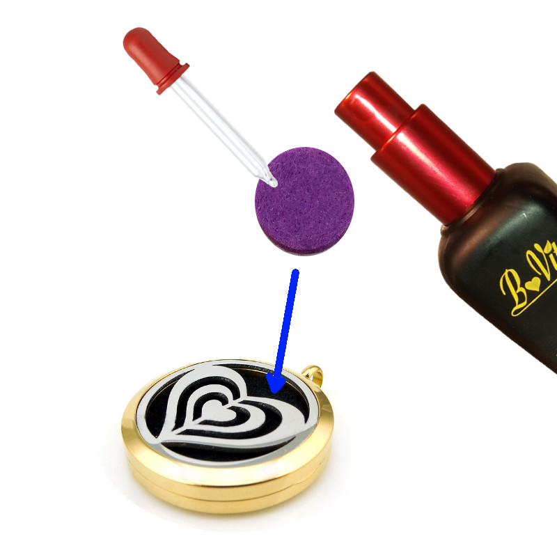 Ouvrez le pendentif et vaporisez ou déposez quelques gouttes de parfum sur les pastilles.